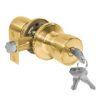 Cerradura tubular modelo tulipa dormitorio/oficina, pomo exterior con llave, pomo interior con seguro, acabado bronce satinado. Backset de 60 mm, picaporte de zamac, 3 llaves y contrafrontal.