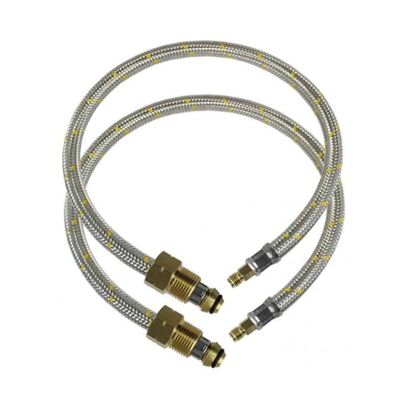 Cuenta con una conexión roscada h.9 7/16” hilo izquierdo e incluye además dos flexibles de 7/8″ x 7/16″ de malla metálica muy resistentes y debidamente certificados.